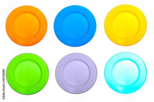 background, blue, bowl, bright, colours, colourful, container, dish, edge, green, group, isolated, kitchen utensile, lot, many-coloured, orange, pattern, plastic, plate, rainbow, set, stack, stacked, yellow