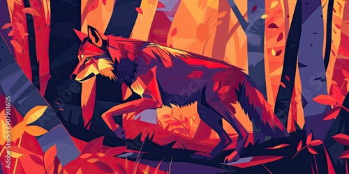 wolf, geometric, colourful, abstract, polygonal, forest, vibrant, nature, wild, animal, environment, natural, wilderness, creative, striking, unique, high-coloured, modern art, illustration, bright, bold, artistic, graphic, contemporary, shape