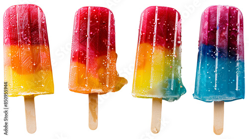 Colorful popsicles, fresh beets, juicy blackberries, and vibrant flip-flops capture the essence of a lively summer day isolated on transparent background.