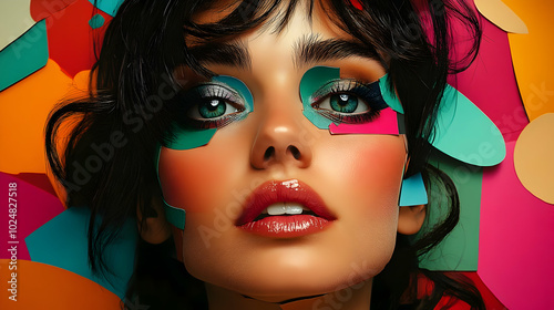 portrait, make-up, colours, beauty, fashion, art, creativity, design, expression, style, photo, vibrant, aesthetic, model, visual, contrast, graphic, contemporary, artistic, face, feature, eye, lip, skin, texture, layer, bold, playful, modern, striking, unique, conceptual, colourful, paper, collage, arrangement, detail, eye-catching, personality, emotion, surface, composition, light, shadow, inspiration, trend, youth, freshness