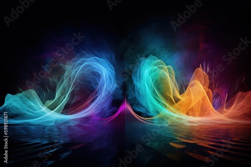 Colorful Psychic Waves. Abstract purple blue green psychedelic waves. Mental, emotional and spiritual spheres. Generative ai