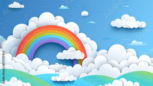 Colorful rainbow and fluffy clouds create a whimsical sky illustration, perfect for bright and cheerful design projects.