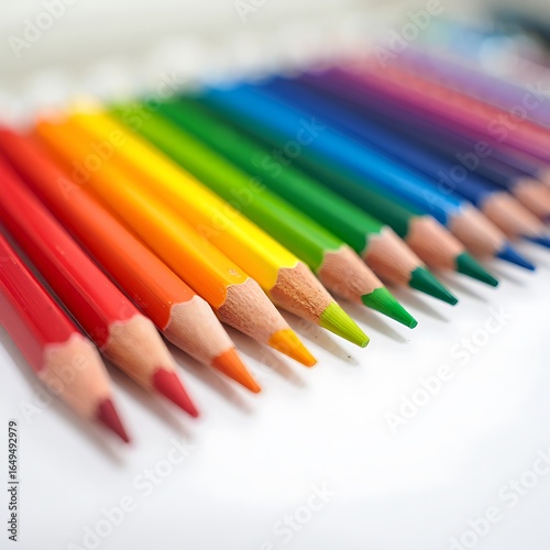 Colorful Rainbow Colored Pencils Arranged on White Background