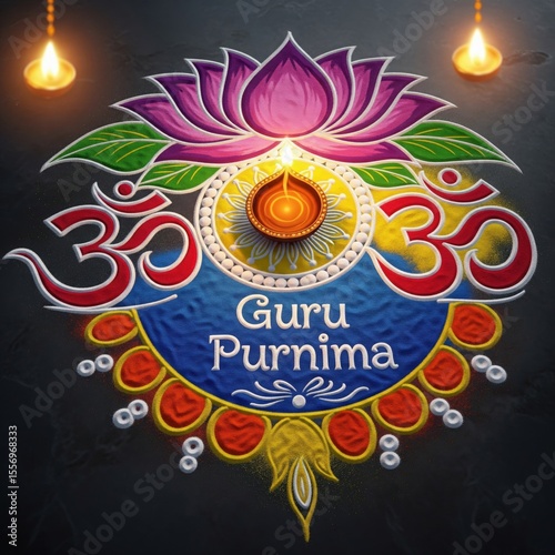 Colorful Rangoli with Om and Lotus – Guru Purnima Art