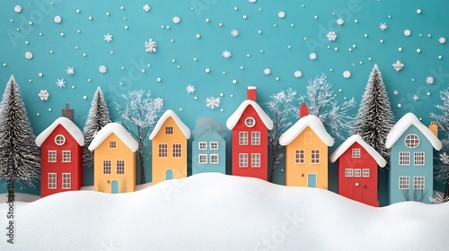Colorful Retro Style Christmas Village Covered in Snowy Landscape
