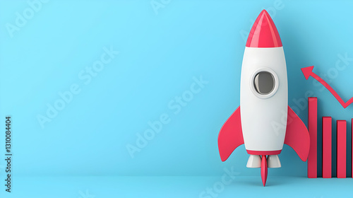 Colorful Rocket and Rising Graph on Blue Background for Growth Concept