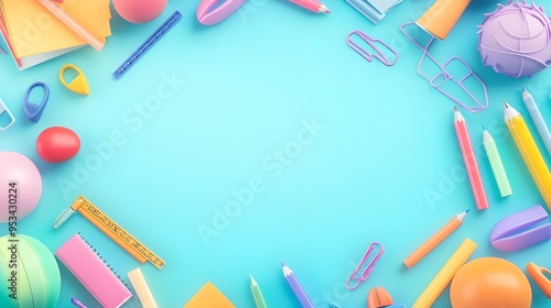 Colorful School Supplies Frame on Blue Background