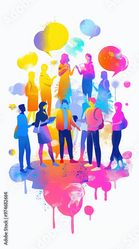 colourful, silhouette, people, social, connected, abstract, network, vibrant, community, group, artistic, teamwork, oneness, digital, isolated, communication, bright, standing, paint, technology, diverse, collaboration, many-coloured, futuristic, togetherness, lively, modern art, creative, interconnected, youth, innovation