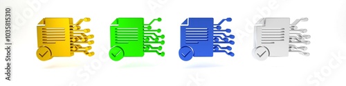 Colorful Smart contract icon isolated on white background. Blockchain technology, cryptocurrency mining, bitcoin, altcoins, digital money market. Minimalism concept. 3D render illustration
