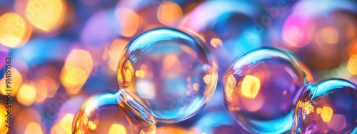 Colorful soap bubbles floating on a festive background