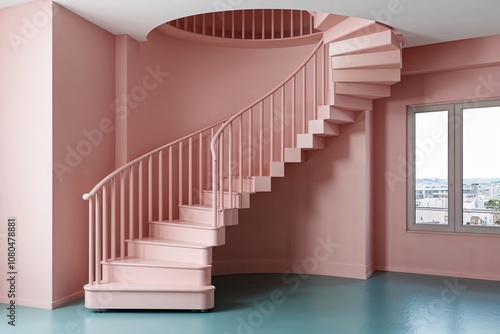 Colorful Spiral Staircase in Unique Architectural Design with Pastel Aesthetics