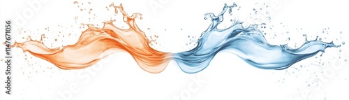 Colorful Splash of Orange and Blue Water Isolated on White Background, Artistic Water Flow in Motion, Abstract Design Element for Creative Projects