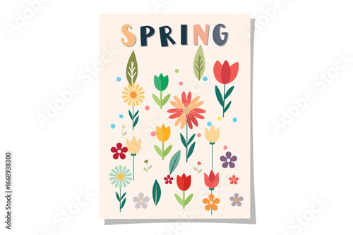 spring, flower, illustration, colourful, nature, seasonal, bloom, design, happy, cheerful, vibrant, floral, typography, decorative, graphic, pattern, artistic, creative, season, elemental, aesthetic, style, botanical, blossom, warmth, leaf, fresh, garden, growth, minimalist, yellow, red, green, orange, pink, blue, dot, springtime, leafy