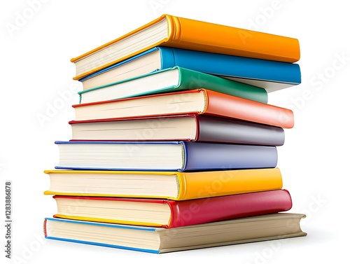 Colorful Stack of Books in Various Shades on a White Background for Education and Learning Concepts