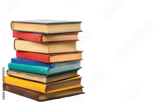 Colorful stack of books resting on a wooden table in a cozy indoor space perfect for reading or studying in the afternoon light