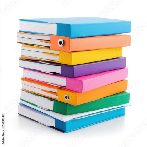 Colorful stack of folders on a white background showcasing vibrant stationery for organization and office use