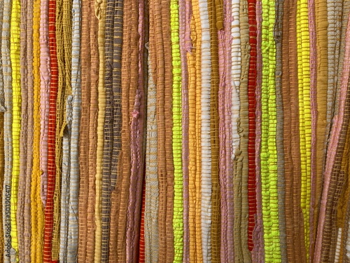 colorful stacked striped knotted fabric web bundle