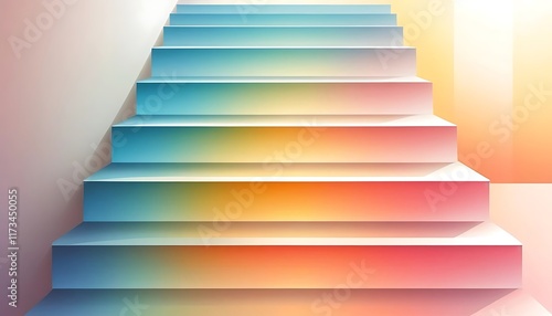 step, stair, staircase, ascent, climb, upward, progress, growth, journey, path, way, direction, rise, elevation, level, stage, transition, movement, colours, gradient, blue, teal, green, yellow, orange, red, pink, pastel, shades, hue, tone, bright, vibrant, light, shadow, perspective, abstract, background, design, modern, minimalist, architecture, interior, illustration