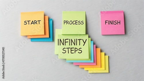 Colorful Sticky Notes Illustrating Infinity Steps in a Process
