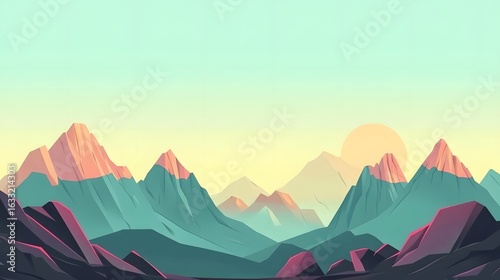 sun, graphic, landscape, modern, textured, illustration, dreamy, vignetting, quiet, stylised, three-dimensional, mountain, colourful, peaceful, art, nature, peak, pastel, background, vale, simple, design, texture, scenery, sunrise, flat, colours, vibrant, digital, empty, horizon, hill, light, composition, geometric