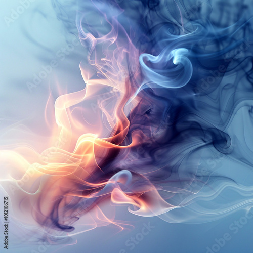 Colorful swirls of smoke dance harmoniously in soft blue and orange hues