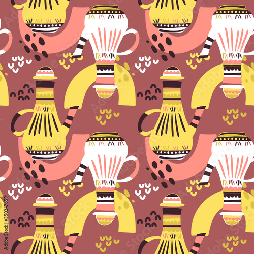 pattern, teapot, doodle, colourful, hot drink, cafes, background, breakfast, brunch, cartoon, dark brown, dot, drink, espresso, green, hand-drawn, home, household, kettle, kitchen, kitchen utensile, menu, object, pink, eatery, seamless, spot, tea, vector, white, yellow