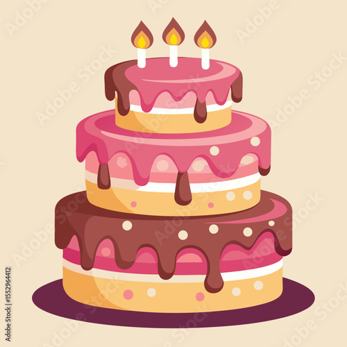 birthday, cake, candle, dessert, sweet, celebration, party, festive, delicious, treat, bakery, frosting, icing, layer cake, decorated, colourful, illustration, vector, design, graphic, food, happy birthday, event, anniversary, special occasion, pastry, chocolate, pink, yellow