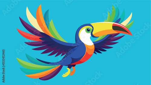 toucan, bird, colourful, wing, flight, nature, tropical, wildlife, blue skies, avian, feather, art, illustration, fauna, bright, profile, exotic, flying, beauty, rainforest, animal, avifauna, beak, scenery