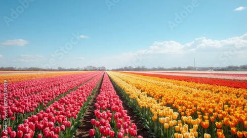 tulip, farm, spring, flower, colourful, field, nature, bloom, sky, agriculture, landscape, vibrant, rural, beauty, season, floral, meadow, scenery, daylight, plant, fresh, picturesque, green, blossom, harmony, natural, serene, high-coloured, lush, greenery, expanse, cheerful, sunny, scenic, huge, cultivation, pastoral, joy, peaceful, garden, growth
