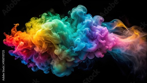 colorful, vapor, dreamy, creative, art,colorful, Colorful abstract smokey vapor cloud formation over a black background with fluid and soft shapes blending together in a minimalist style
