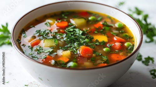 Colorful Vegetable Soup with Fresh Herbs