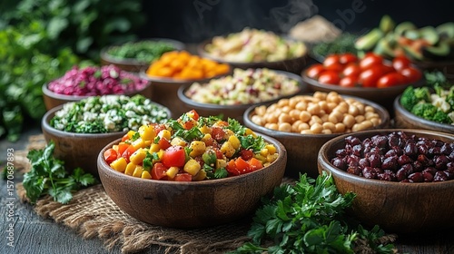 Colorful vegetarian dishes rich in magnesium, vibrant and healthy plant-based meals