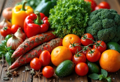 colorful vibrant arrangement fresh ingredients displaying nutritional benefits artistic presentation, aesthetic, bowl, bright, composition, capturing