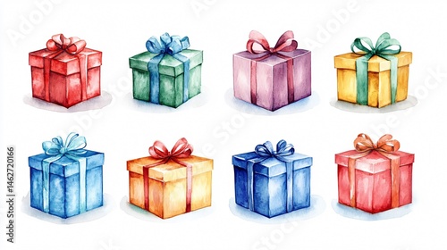 Colorful Watercolor Gift Illustration Set for Greeting Cards and Presentations