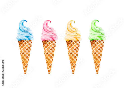 Colorful watercolor ice cream cones