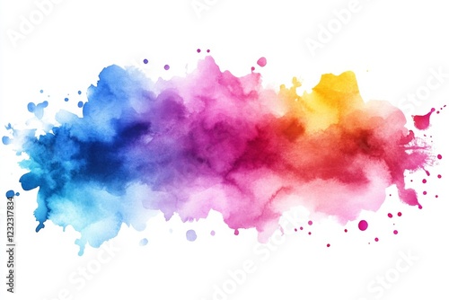 Colorful watercolor splash with vibrant pink, blue, and yellow tones on a white background for artistic design