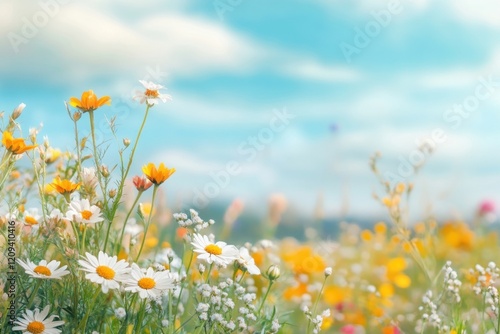 Colorful wildflowers in a meadow landscape nature daisy
