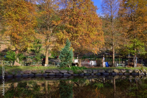 Colorful winter deciduous cypress tree,(Farm in Hsinchu,Taiwan)