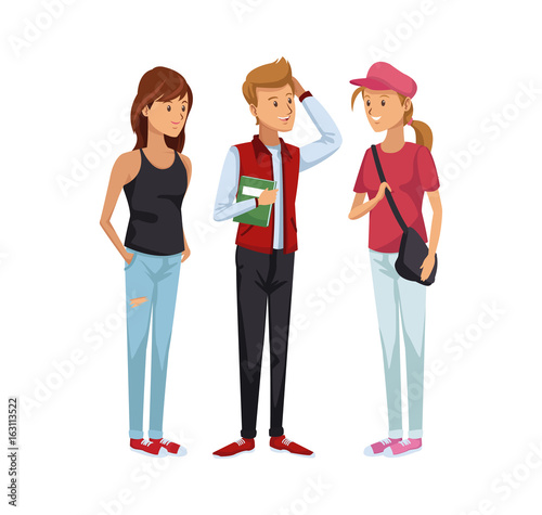 colourful, woman, student, standing, boy, coiffure, fashion, style, clothes, vector, illustration, group, people, young, college, school, university, student, education, female, friendship, smiling, teenage, friends, casual attire, lifestyle, together, man, teenage, male, study, youth, diversity, woman, class, man, clothing, pant, shoe, blouse, book, briefcase, cap, jean