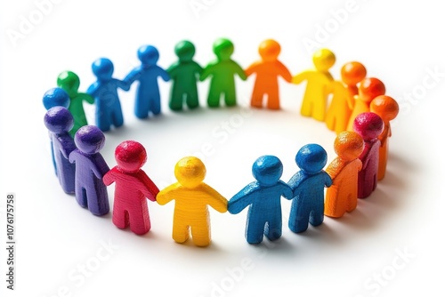 Colorful wooden figures holding hands in a circle: promoting unity and diversity