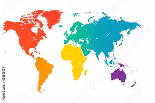 Colorful World Map, Rainbow Gradient Continents, Vector Global Illustration