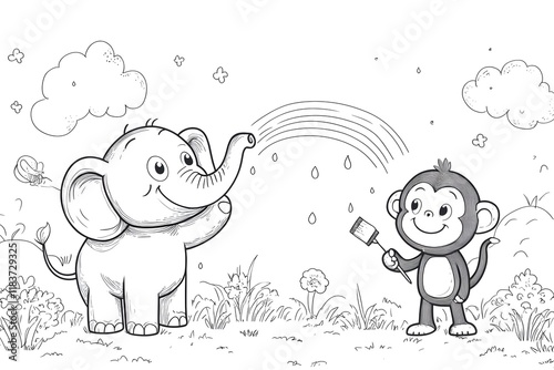 coloring book for kids, cute animal theme. can be printed or colored using digital equipment