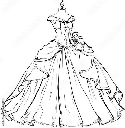 coloring page, princess, dress, woman, bride, wedding, fashion, beauty, princess, vector, illustration, silhouette, people, art, lady, sketch, gown, cartoon, drawing, hair, elegance, costume, person,