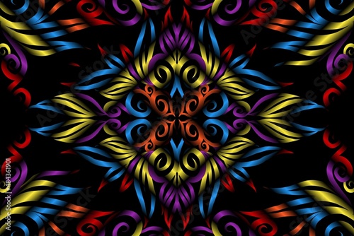 colourful caleidoscope classic gradient flower art pattern of traditional tenun batik ethnic dayak ornament for wallpaper ads background sticker or clothing