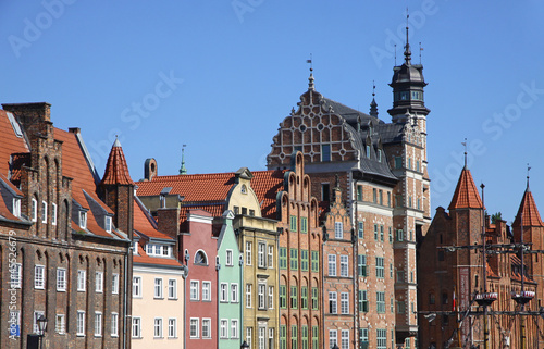 Colourful old buildings with blue sky in City of Gdansk