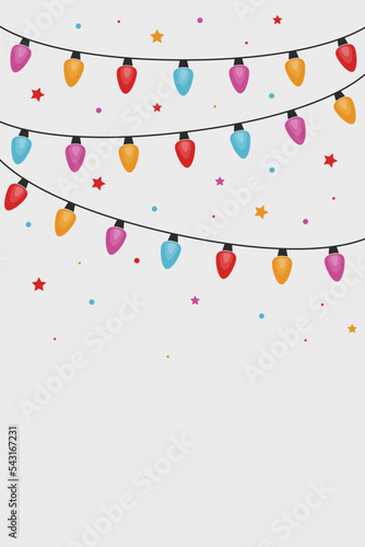 Colourful string of lights. Concept of Christmas card template. Vector illustration