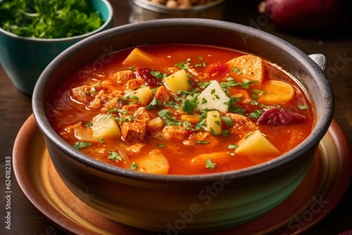 Comforting and hearty soups and stews. Soup or stew of meat and vegetables seasoned with paprika and other spices. Generative AI technology