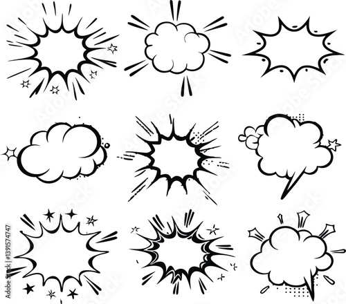 Comic Book Speech Bubbles Explosions, Clouds, and Stars