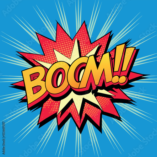 Comic Book Style Explosion with Boom Text and Cat Illustration