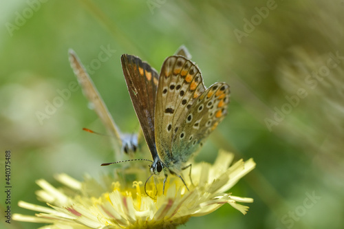 Common Blue butterfly - polyommatus icarus. Little blue butterfly on wild meadow